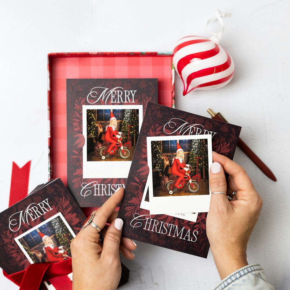 Calligraphy Merry Card5×7″ foil-pressed flat card design printed on your choice of top-quality press papers. Standard white envelopes are included with upgrades available.From $23.00RedPineHiveCharcoalTropical NightsCrimsonOliveSpruceGreenRed EarthPewterCookieGoldRedSilverRose GoldArctic BlueLilacEvergreenIridescentNo