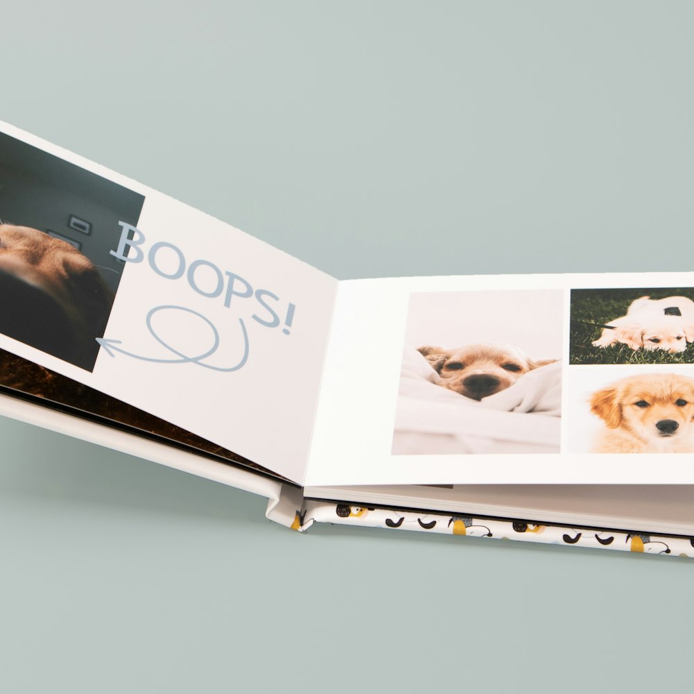 Full, uninterrupted spreads with a premium, semi-gloss finish. Customize covers in leather, linen, or photo-wrap. Ideal for lasting pet memories.