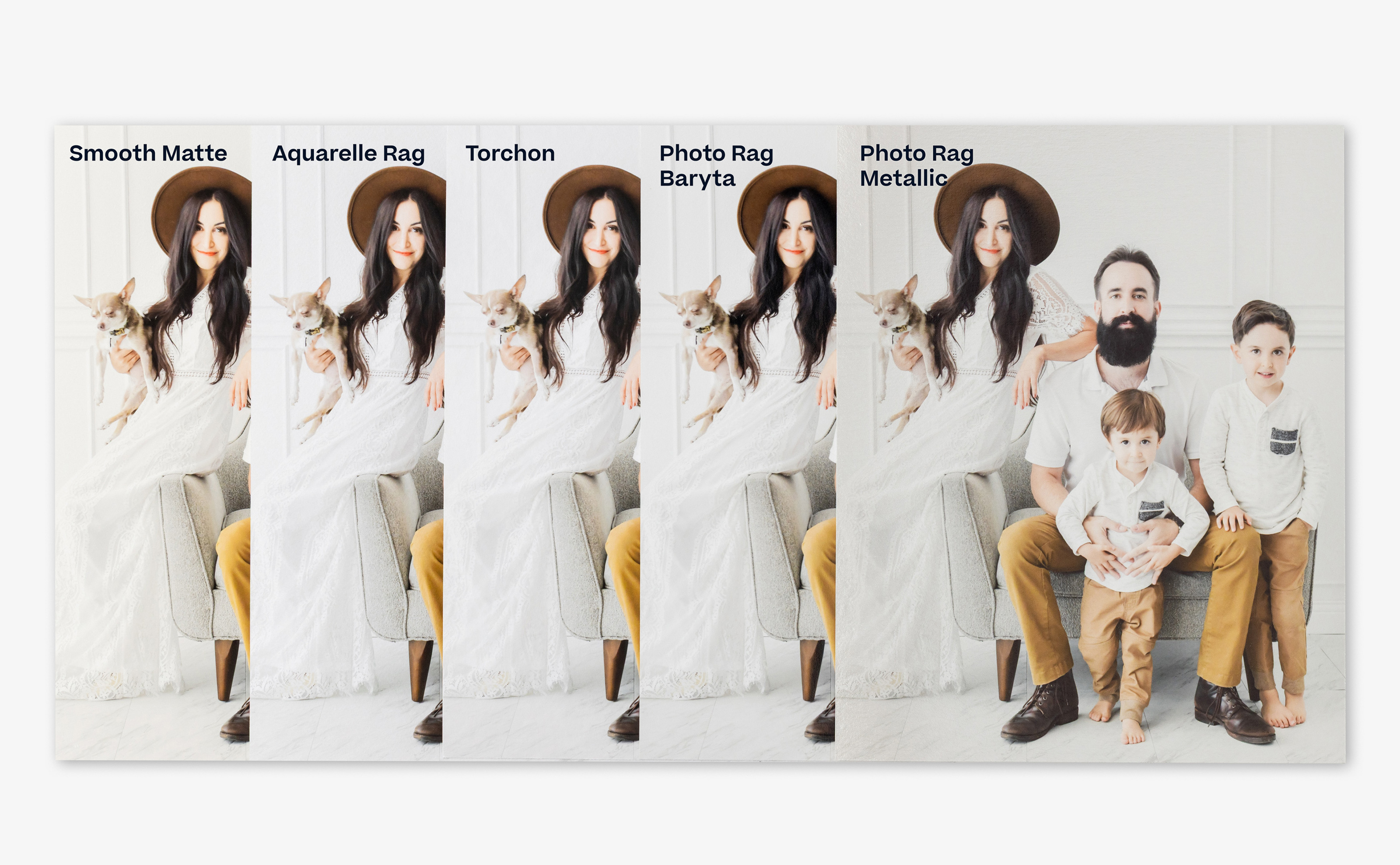 - Smooth Matte – Our most popular! Made from 100% cotton with a smooth surface that’s great for portraits and detailed artwork.