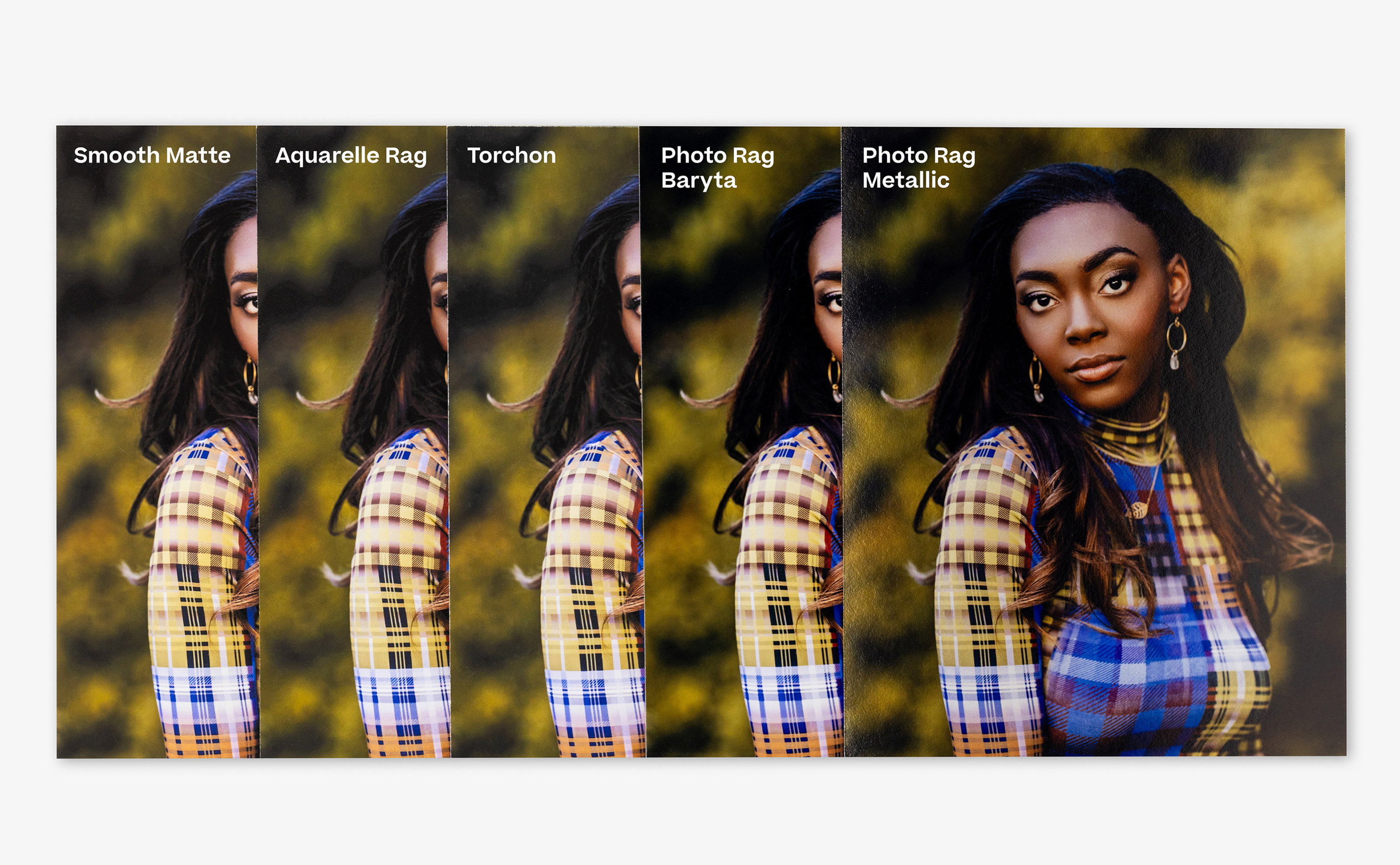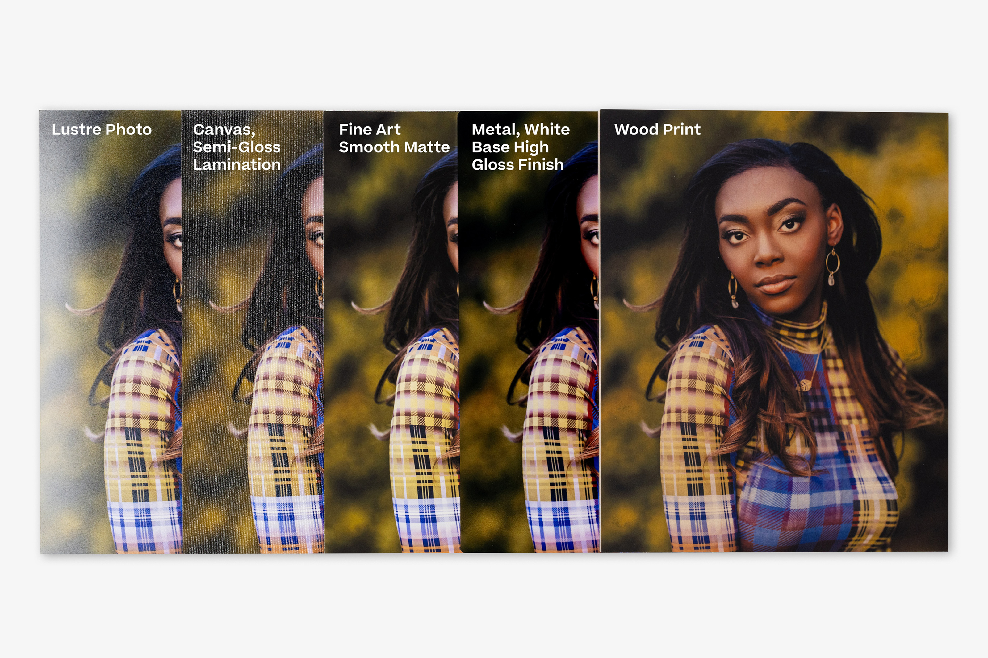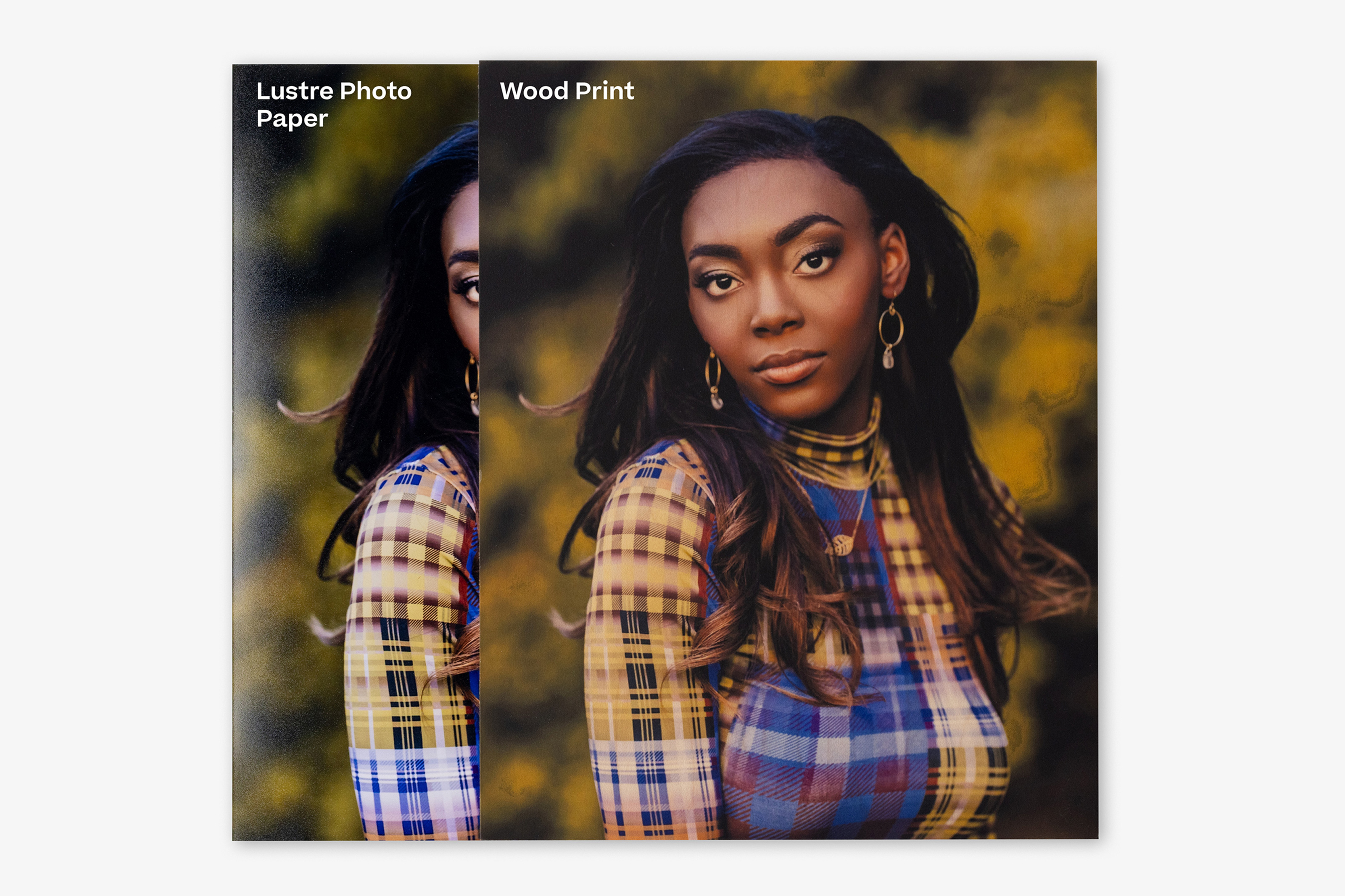 For these comparison examples, we printed the same two image files as-is across our surfaces so you can see how different surface types and printing methods affect the final printed image. No adjustments or edits have been made to the file on a per-product basis to achieve a specific editing style, the way we may normally do.