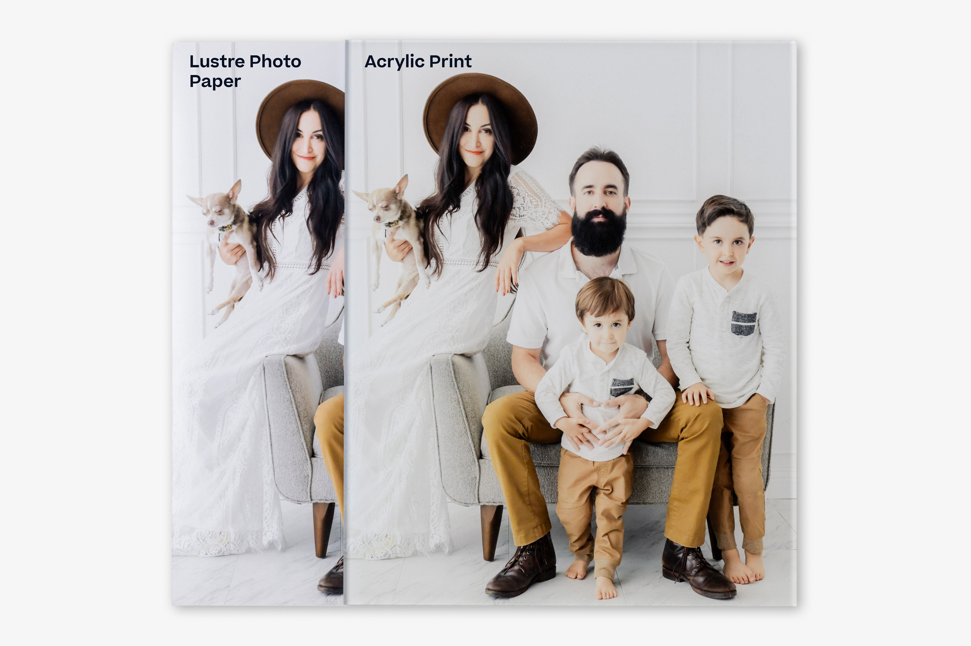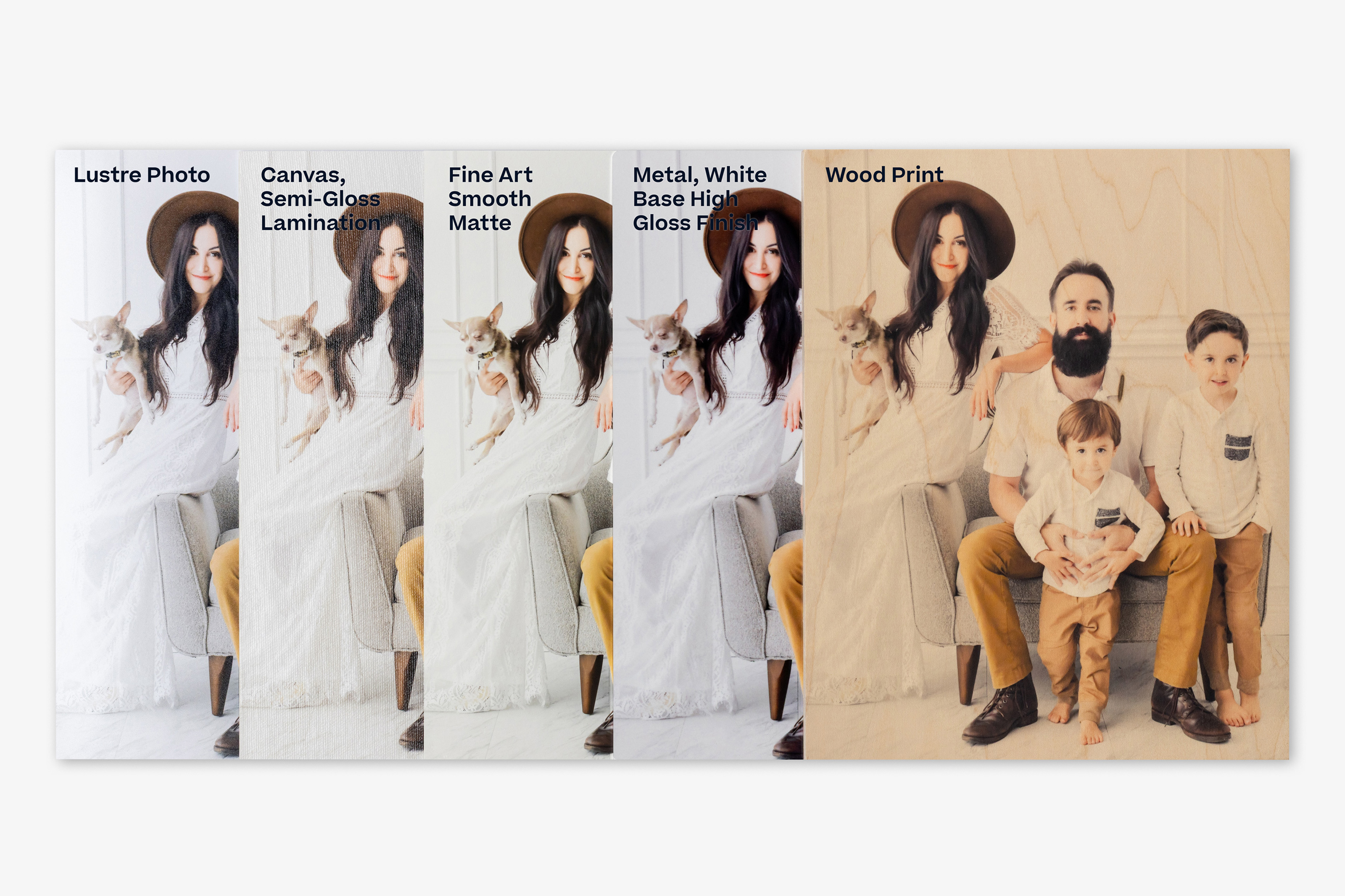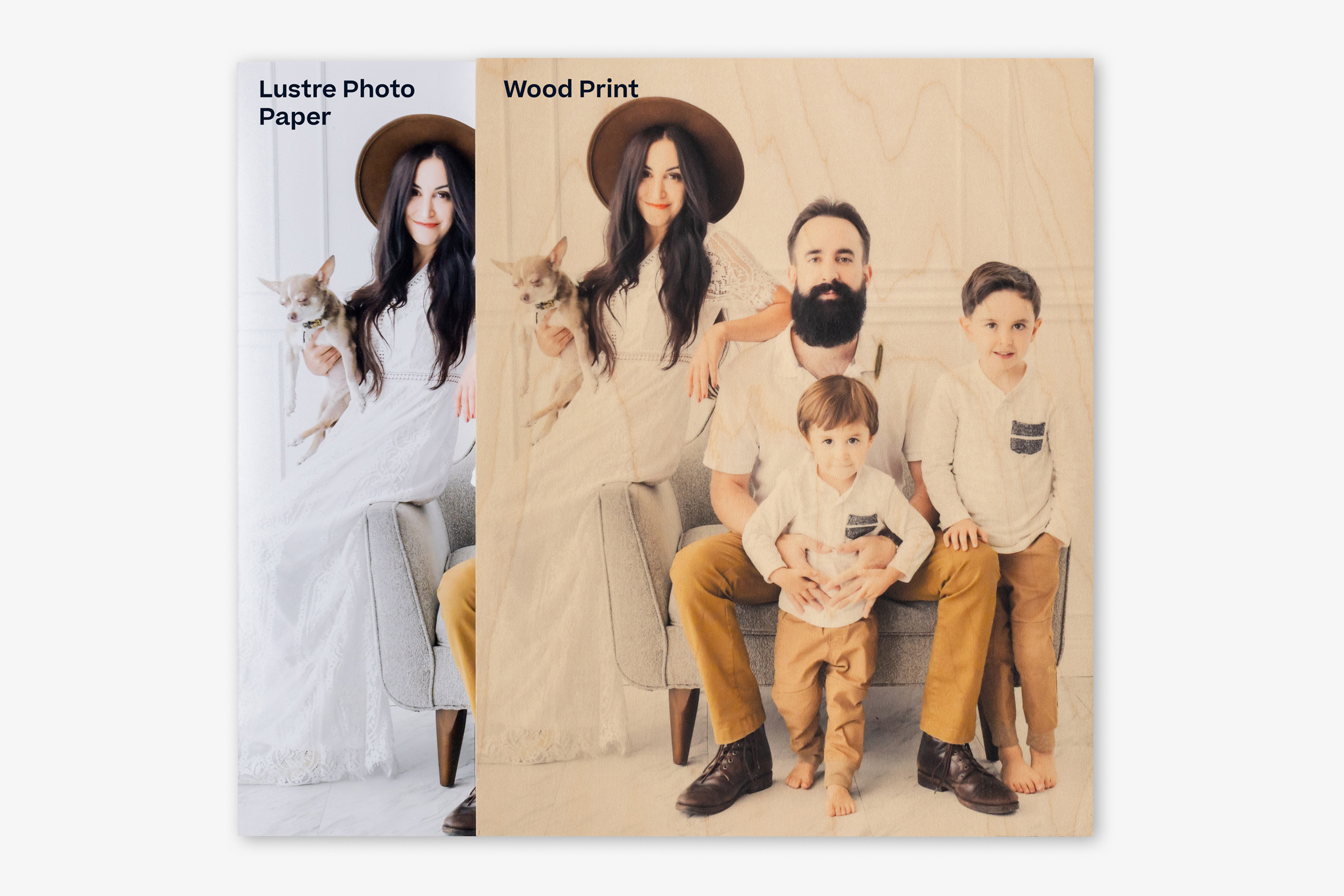 For these comparison examples, we printed the same two image files as-is across our surfaces so you can see how different surface types and printing methods affect the final printed image. No adjustments or edits have been made to the file on a per-product basis to achieve a specific editing style, the way we may normally do.