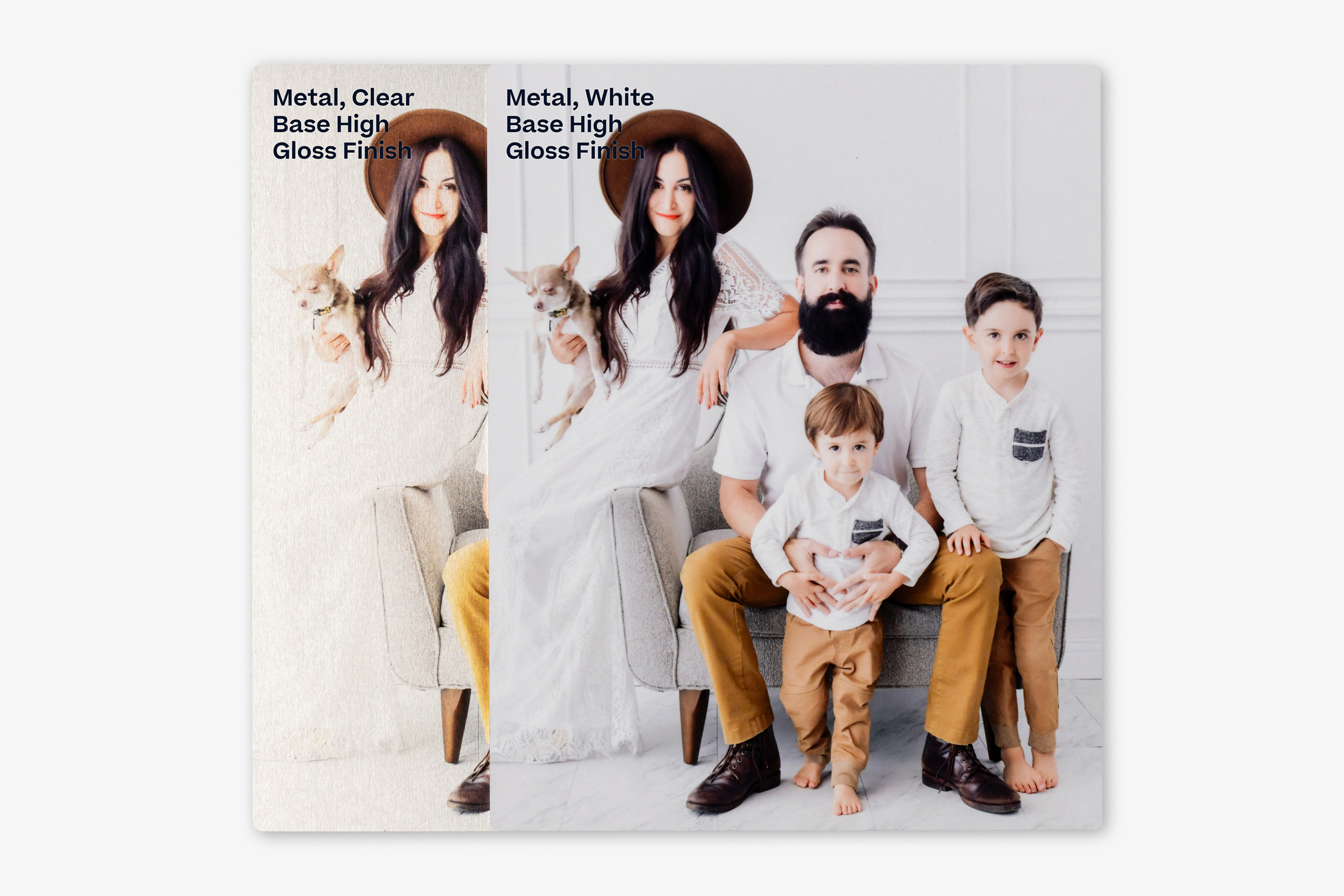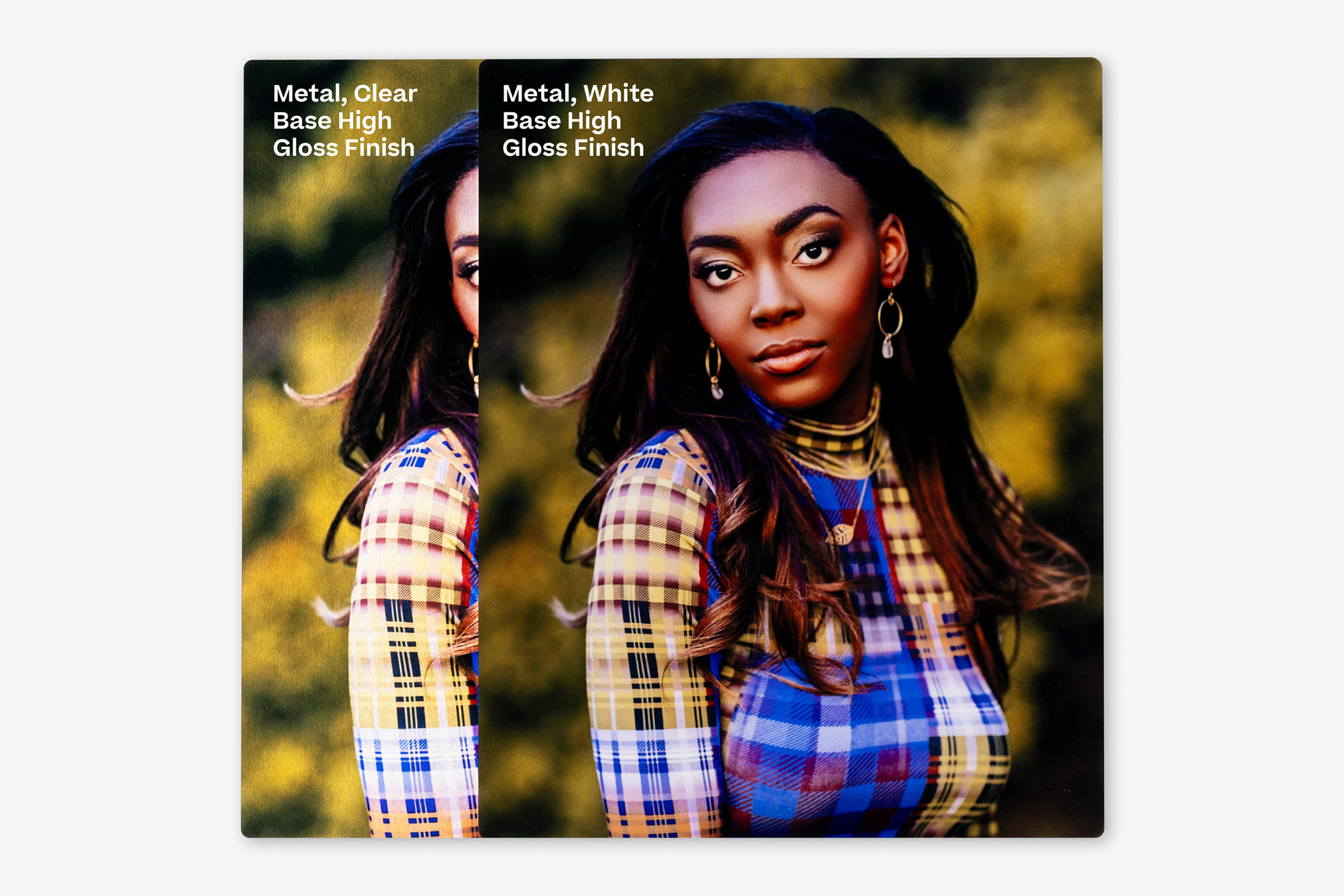 White Base is our most popular metal product and the best way to achieve vibrant skin tones. A High-Gloss finish takes your bright, vivid colors to the next level and is chosen to brighten up any space with a sleek, stylish, modern art display.