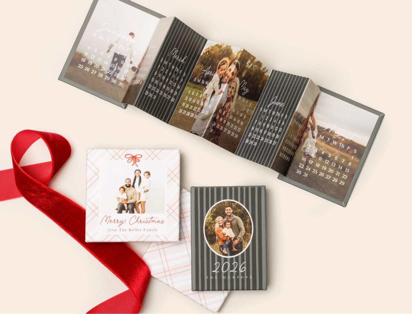 These pocket-sized keepsakes are a favorite among clients and something they will carry with them wherever they go. Accordion Mini Books have a magnetic closure and up to 14 customizable panels that unfold accordion-style for a fun way to share images. Use our free templates to design a 3×3" square or 2½×3½" wallet-size Mini Book.