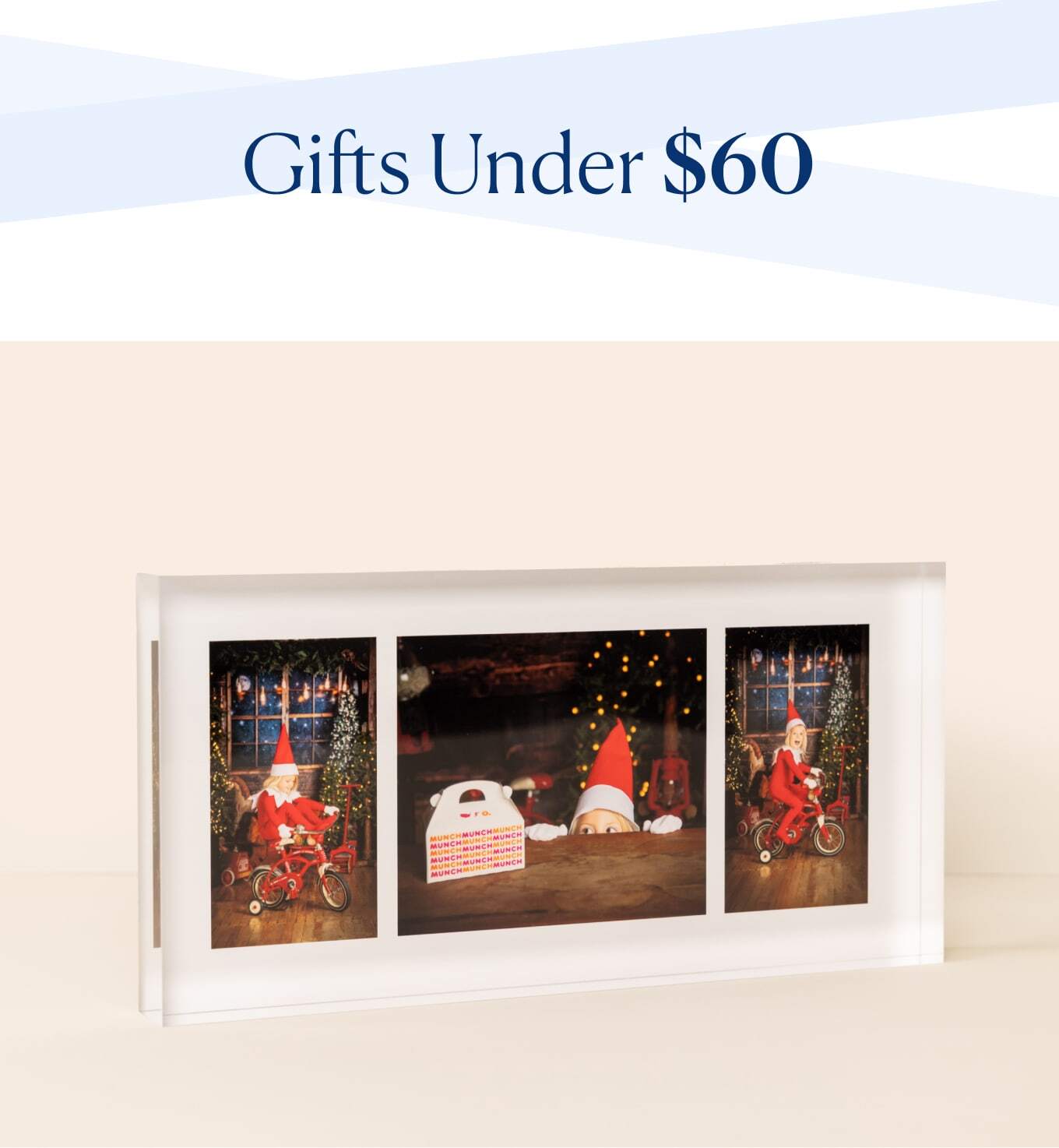 Creating and presenting your client with a personal gift is a great way to invest in your client relationships and promote your brand. This holiday season, show clients how much you value them with a unique thank-you gift — all you have to do is pick one and drop in your images! You'll save time on designing so you can sit back, sip on some eggnog, and get them delivered in time for Christmas. Plus, these gift ideas are all under $60, so what’s more merrier than that?