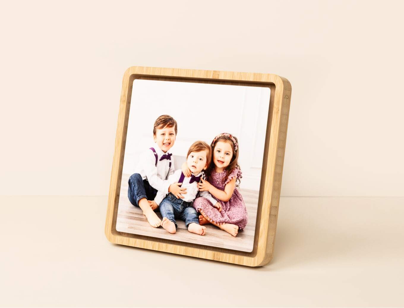A new addition that will warm up your collections and any small space. Our Bamboo Tabletop Frames perfectly blend style and functionality, providing an easy and elegant way to display 5×7" Metal Prints. Each frame comes with strong magnets, making it simple to switch out images whenever your clients wish.