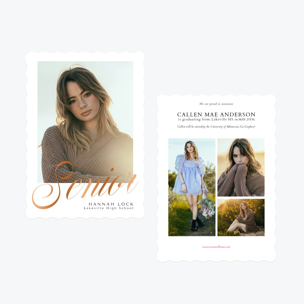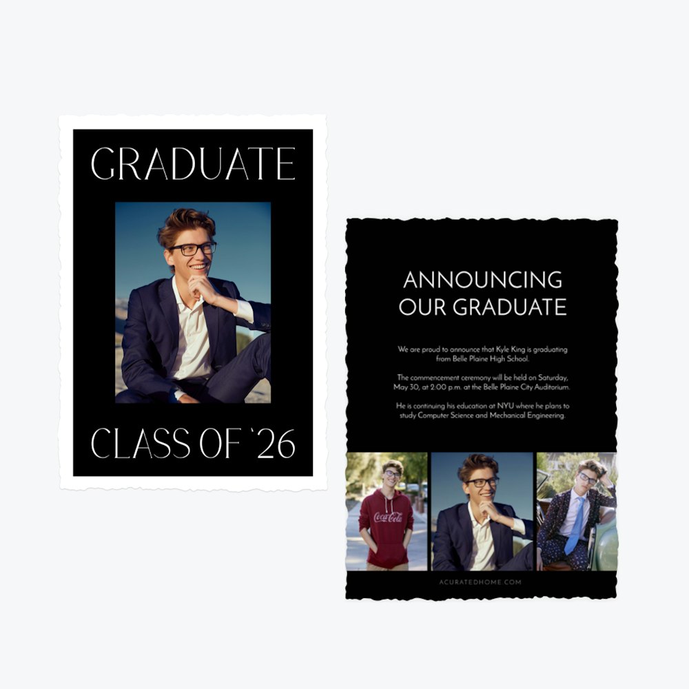 Explore one design and unlock endless possibilities. With our flexible Card Editor, you can customize layouts, colors, fonts, and finishes to create the perfect announcement for every graduate.