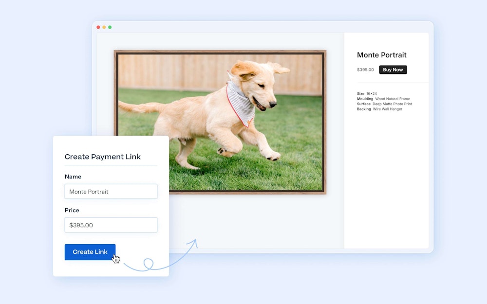 Accept print sales anywhere by creating sharable Payment Links that automatically process and fulfill orders — no store setup required.