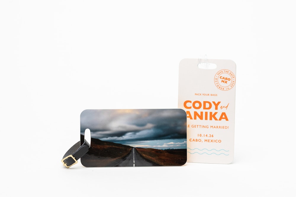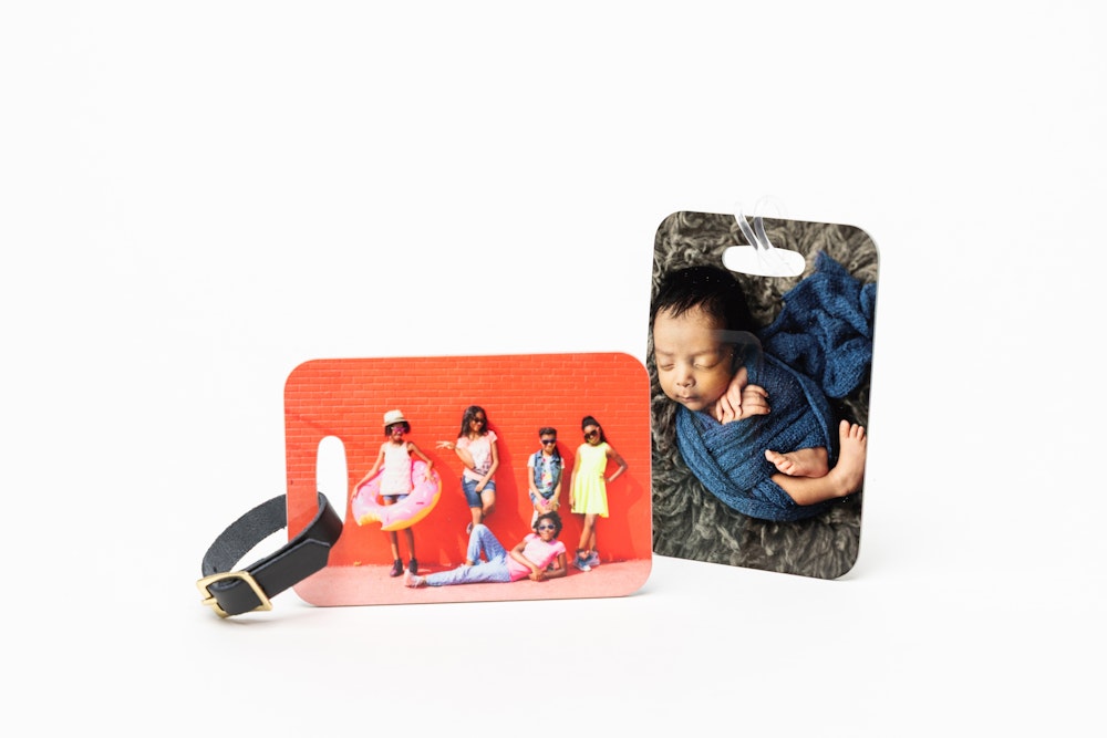 Each Bag Tag ordered includes both a black leather strap and a clear plastic strap.