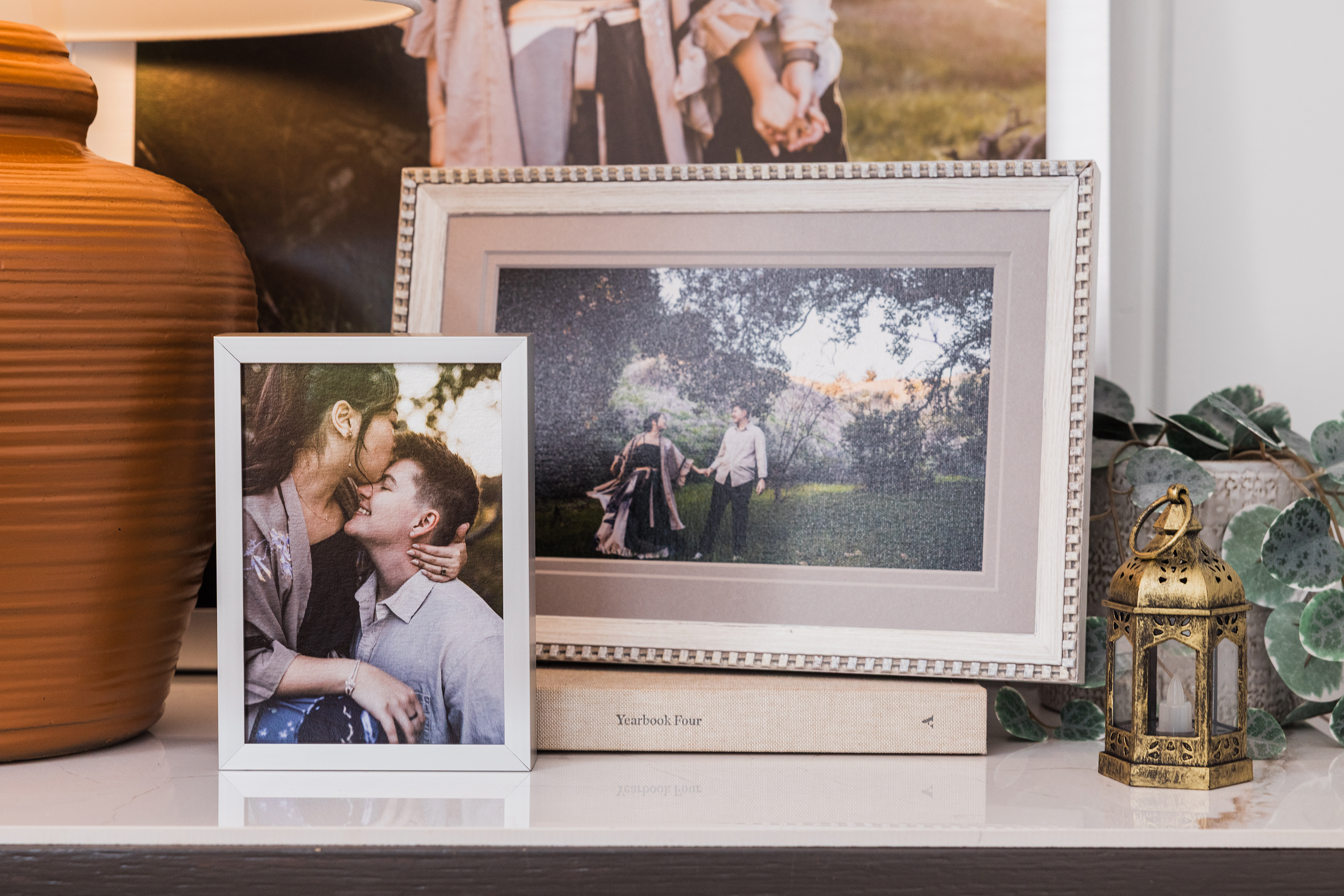 Our Framed Tabletop Prints are perfect for a smaller display for a shelf or desk. Choose an easel back for easy display on any surface. Your images are skillfully framed to preserve them for years to come. Each print is mounted to styrene, or masonite for Canvas Prints, to perfectly fit the frame before your choice of moulding is installed. Combine different moulding styles, mats, and acrylic options to create a custom masterpiece.