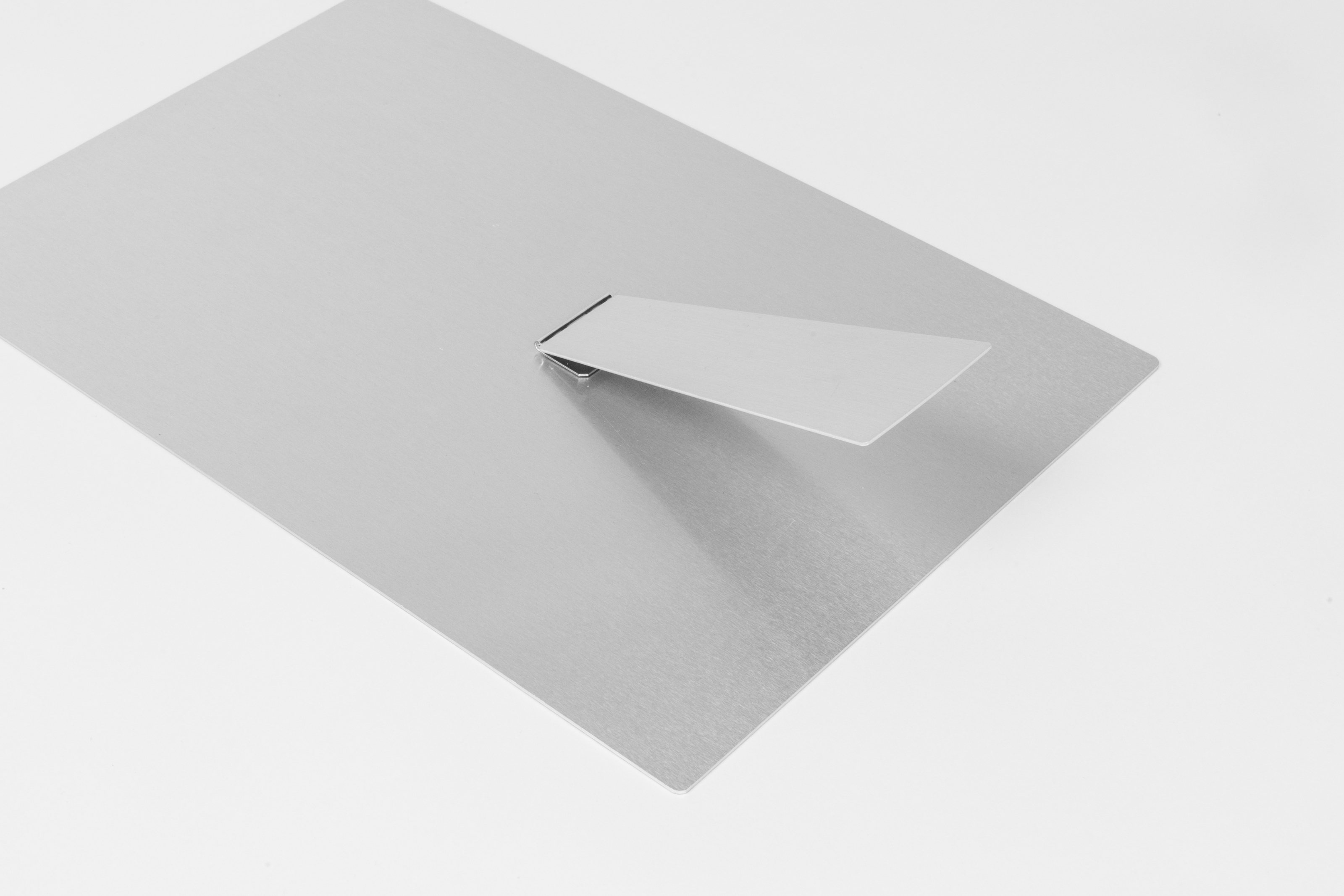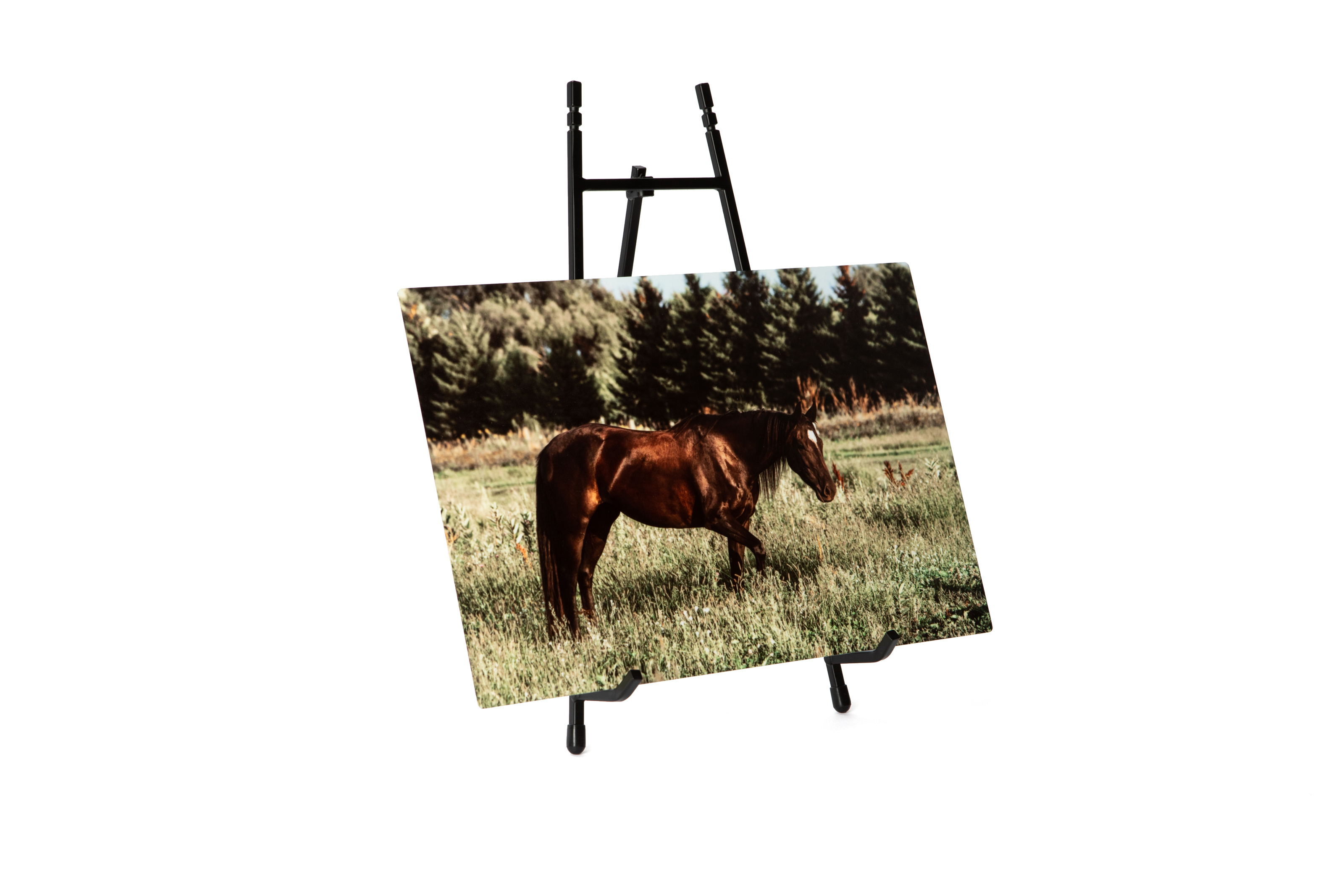 Order your Tabletop Metal Print without display hardware and add a Metal Display Easel to provide a museum-like display. Easels are available in the Prints catalog in ROES.