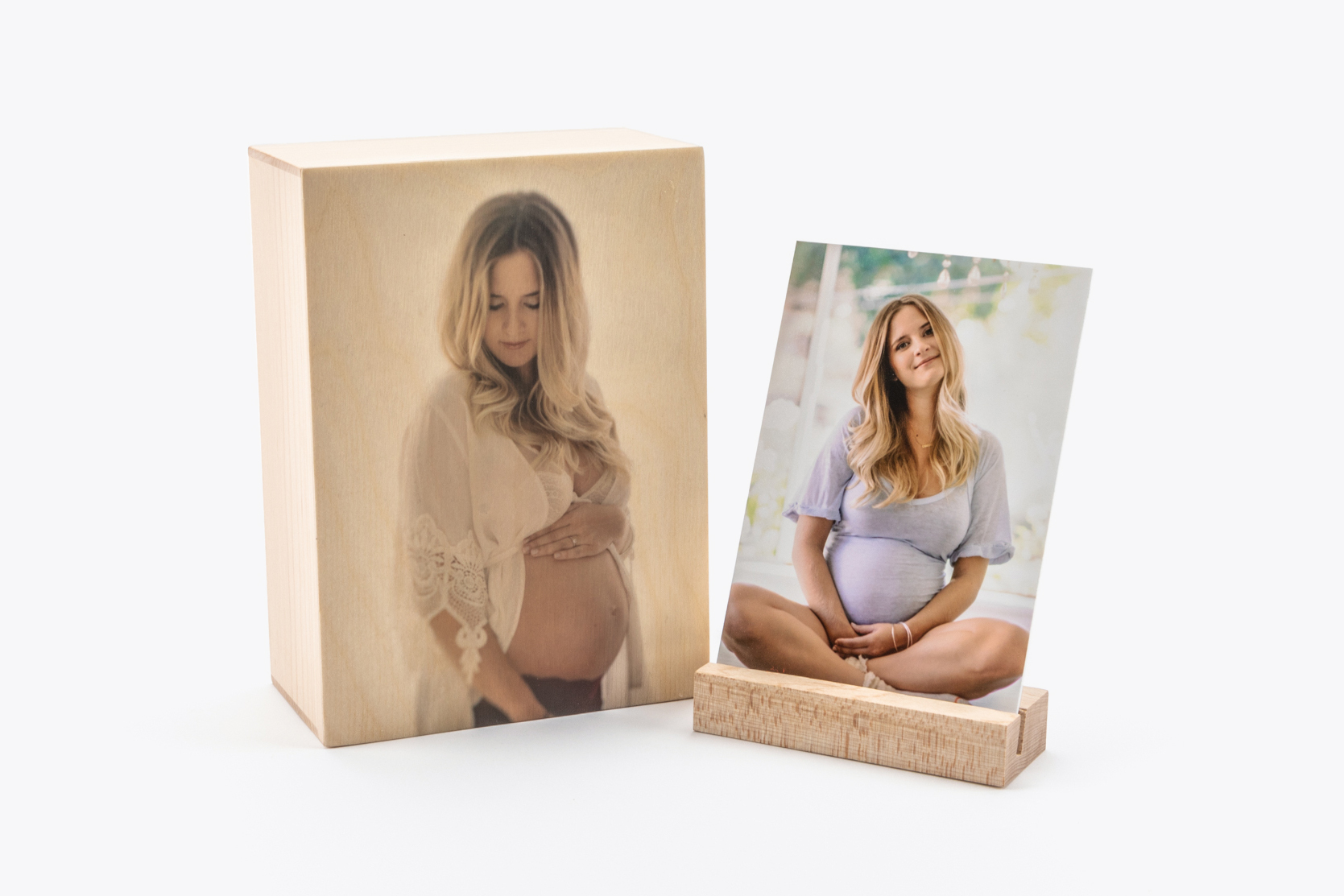 Personalize the slide-off lid with your favorite image or your studio branding. Your printed images or design will show off the beautiful wood grain appearance through areas with lighter colors giving it a warm finish.