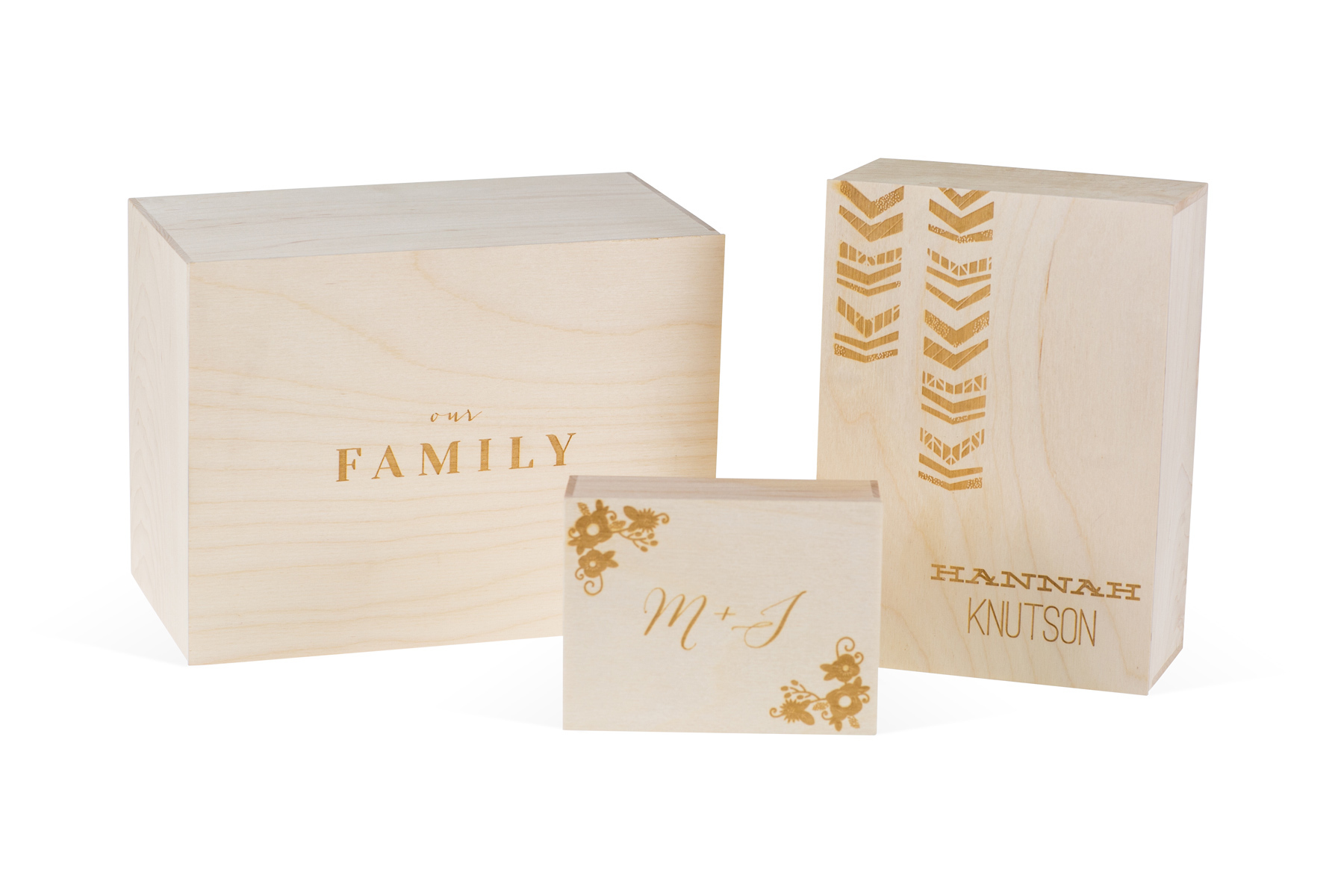 Create a one-of-a-kind heirloom for your clients with our highly customizable maple wood boxes.