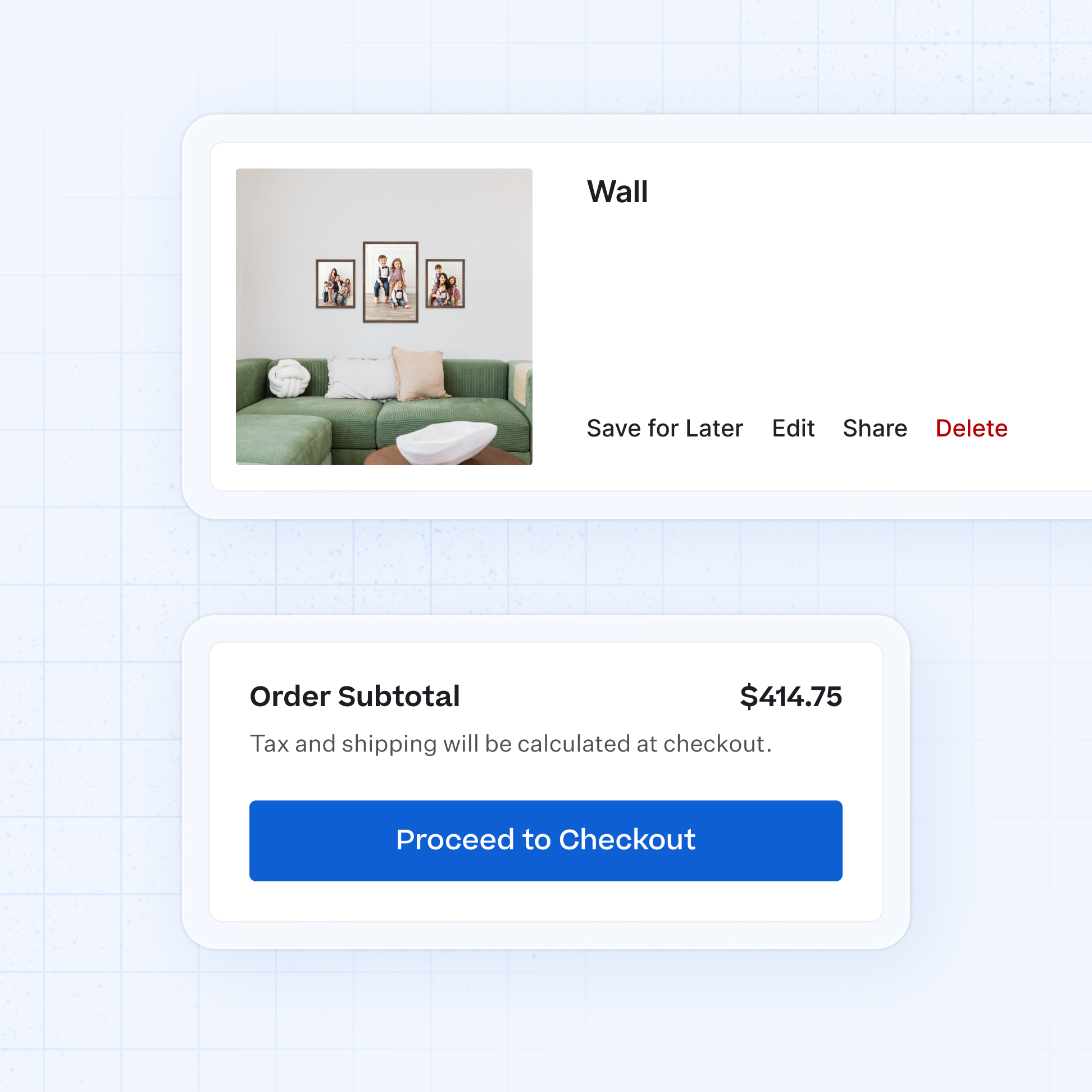 Give your clients a stunning preview of their gallery wall before ordering. This allows for a smooth approval process without displaying pricing, so clients can focus on the design, making collaboration seamless and efficient.